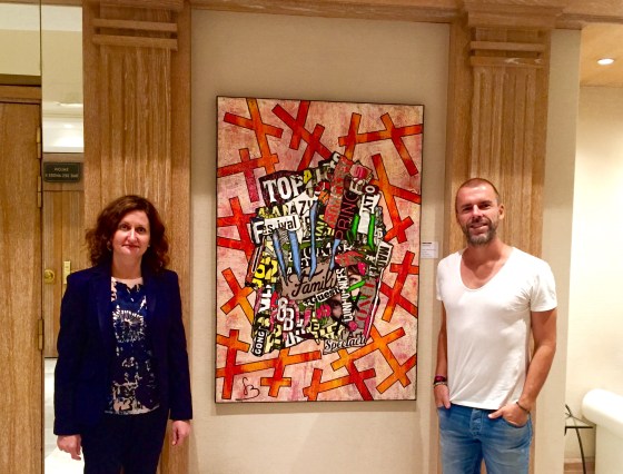 Parrainé par la célèbre et éclectique Madame Jeanne Augier, le plasticien cannois asseoit son style fait de collages, de couleurs, de messages…