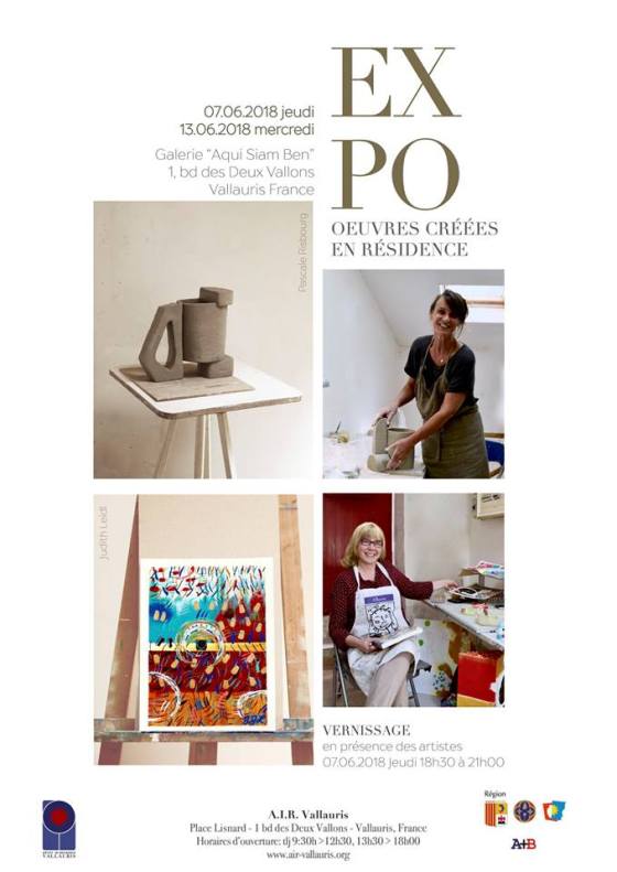 A.I.R. Vallauris est heureux d’annoncer l’ouverture de l’exposition des œuvres créées en résidence par deux artistes internationaux le 7 Juin 2018 dans la Galerie Aqui Siam Ben.