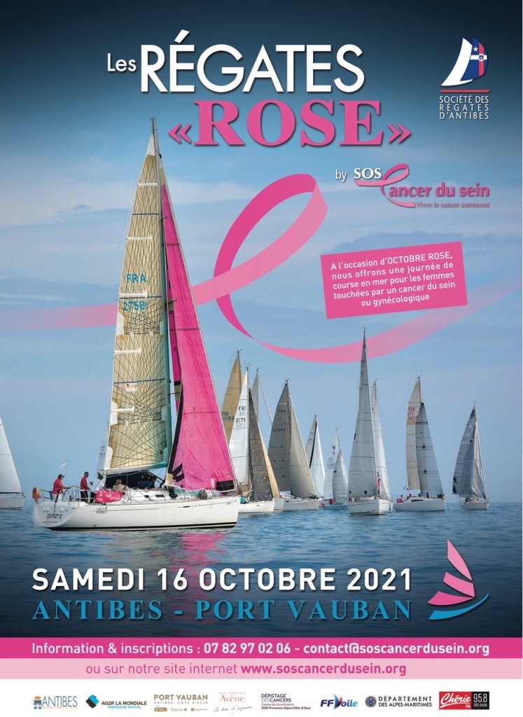 À l’occasion de l’octobre rose, l’association SOS Cancer du Sein co-organise avec la Société des Régates d’Antibes la 8ème édition des « Régates Rose » le Samedi 16 octobre 2021; course dédiée aux femmes touchées par un cancer du sein ou gynécologique. Les personnes atteintes par la maladie ainsi que leur entourage sont conviés à former des équipages et à venir régater à bord des voiliers de plaisanciers de la #SRAntibes, le tout dans une ambiance sportive, festive et conviviale.